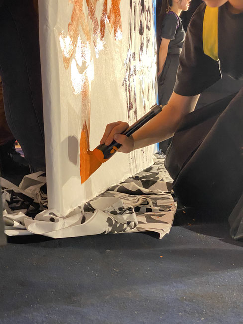 由布高校の書道部の皆さんによる書道パフォーマンスも。
